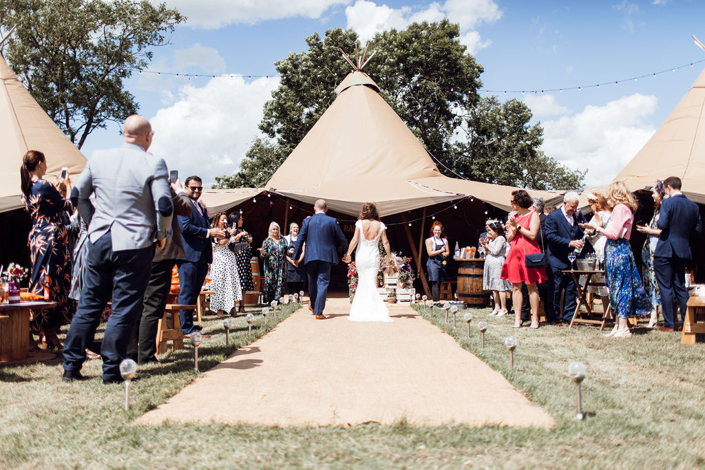 Teepees are built for British weather. They’re waterproof and can be incredibly cosy. We encourage all our couples to have a 'wet weather plan' - for piece of mind if nothing else! That way, if rain is forecast in the run up to your day we can: adjust your set up by closing more of your teepee sides, lay extra matting outside your teepee, add heaters or fire pits and create a snug atmosphere that your guests will actually love. Teepee weddings look beautiful in all weather - it’s part of the charm.