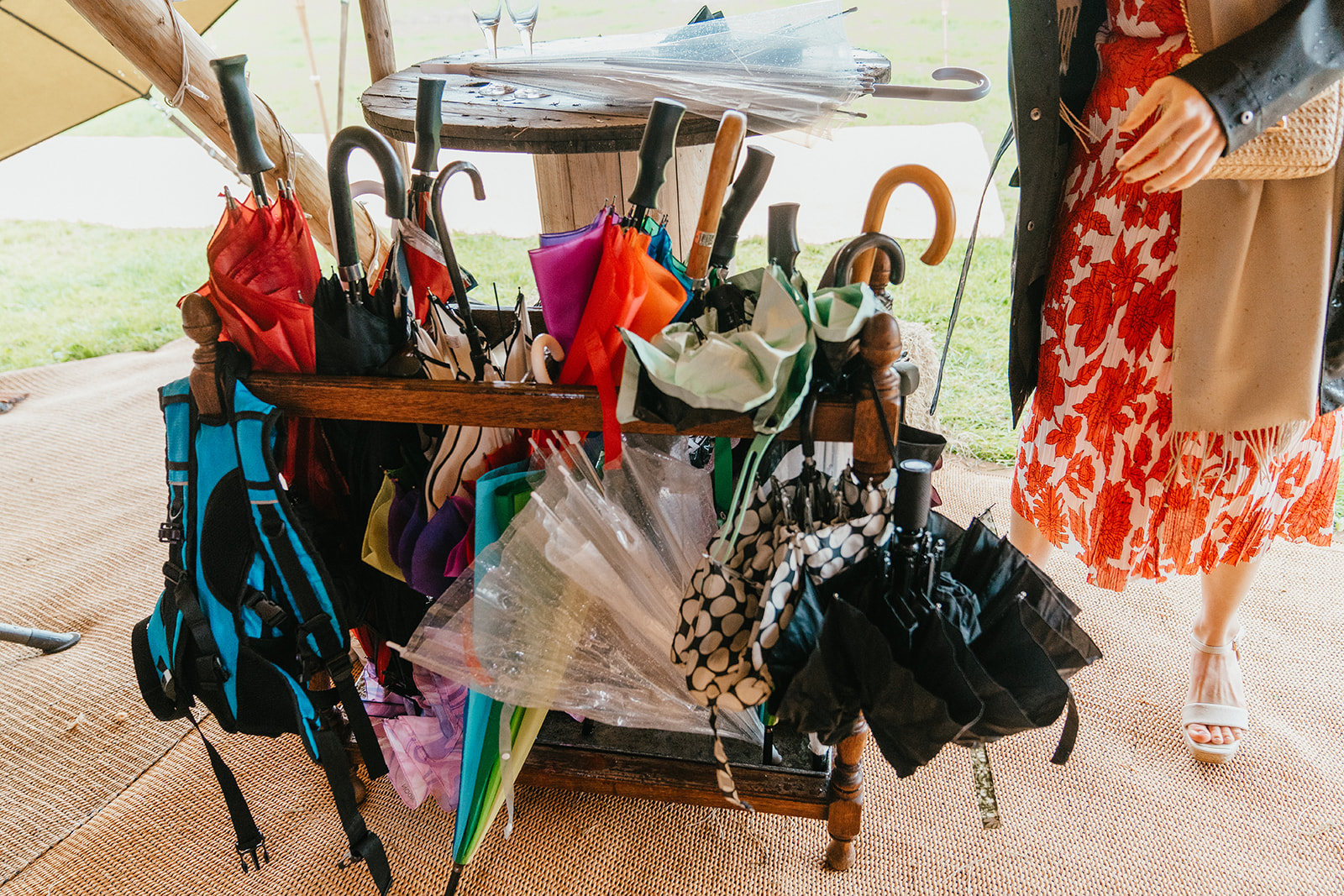 Solution: Our teepees are the backup. Bad weather? You’ve got it covered, literally, while keeping the same beautiful, relaxed atmosphere you’ve dreamed of. We can shift outdoor ceremonies inside, install more matting so once your guests are in the teepee they don’t have to walk across wet grass to the toilets, food trucks etc.
