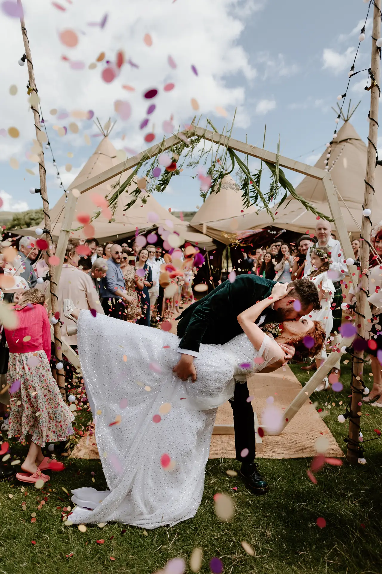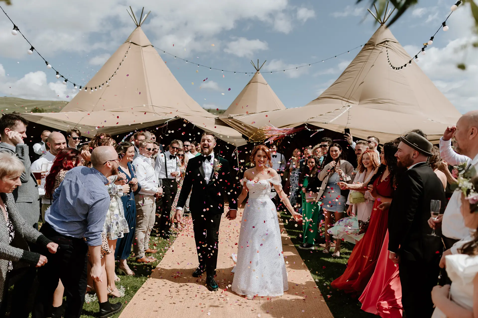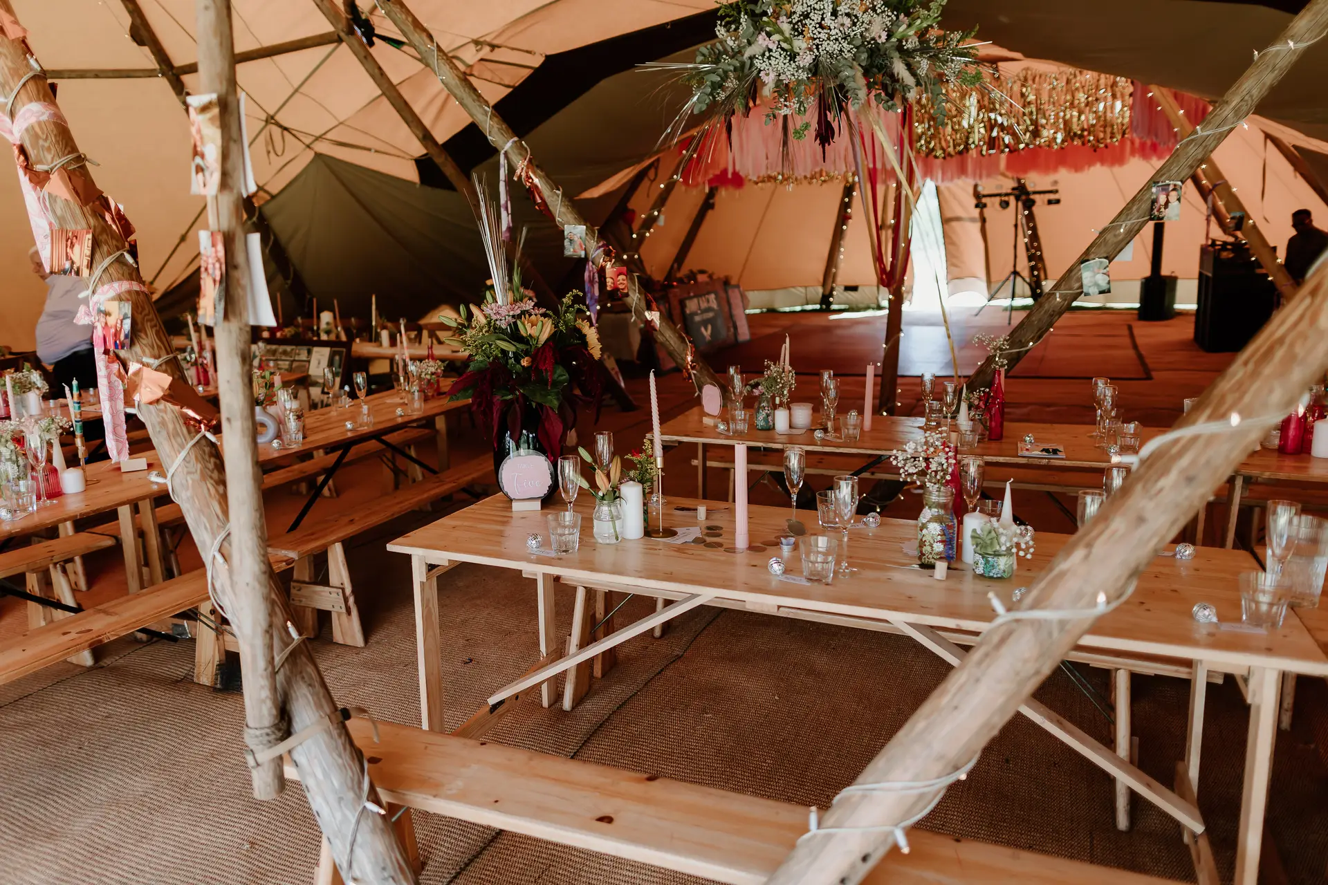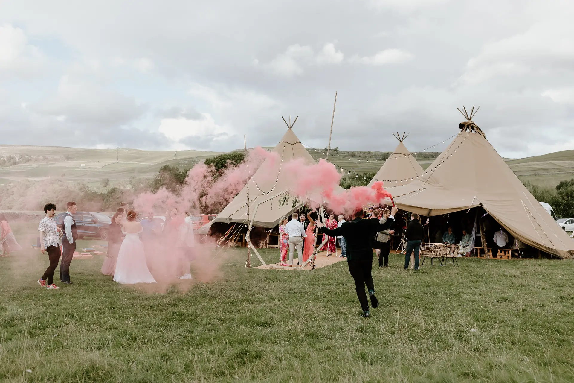 “Just go for it! Having a tipi wedding means you can go wild and even have an alpaca there if you want one (that’s what we had). Also, have a look at making streamers on YouTube, they look fantastic up in the teepee.”