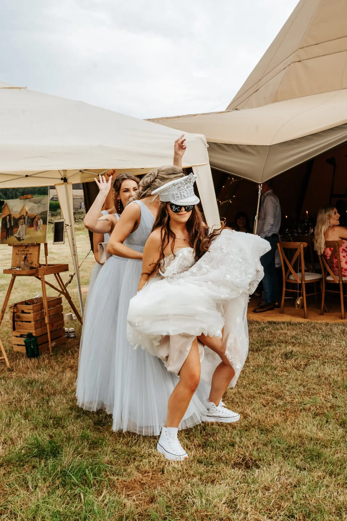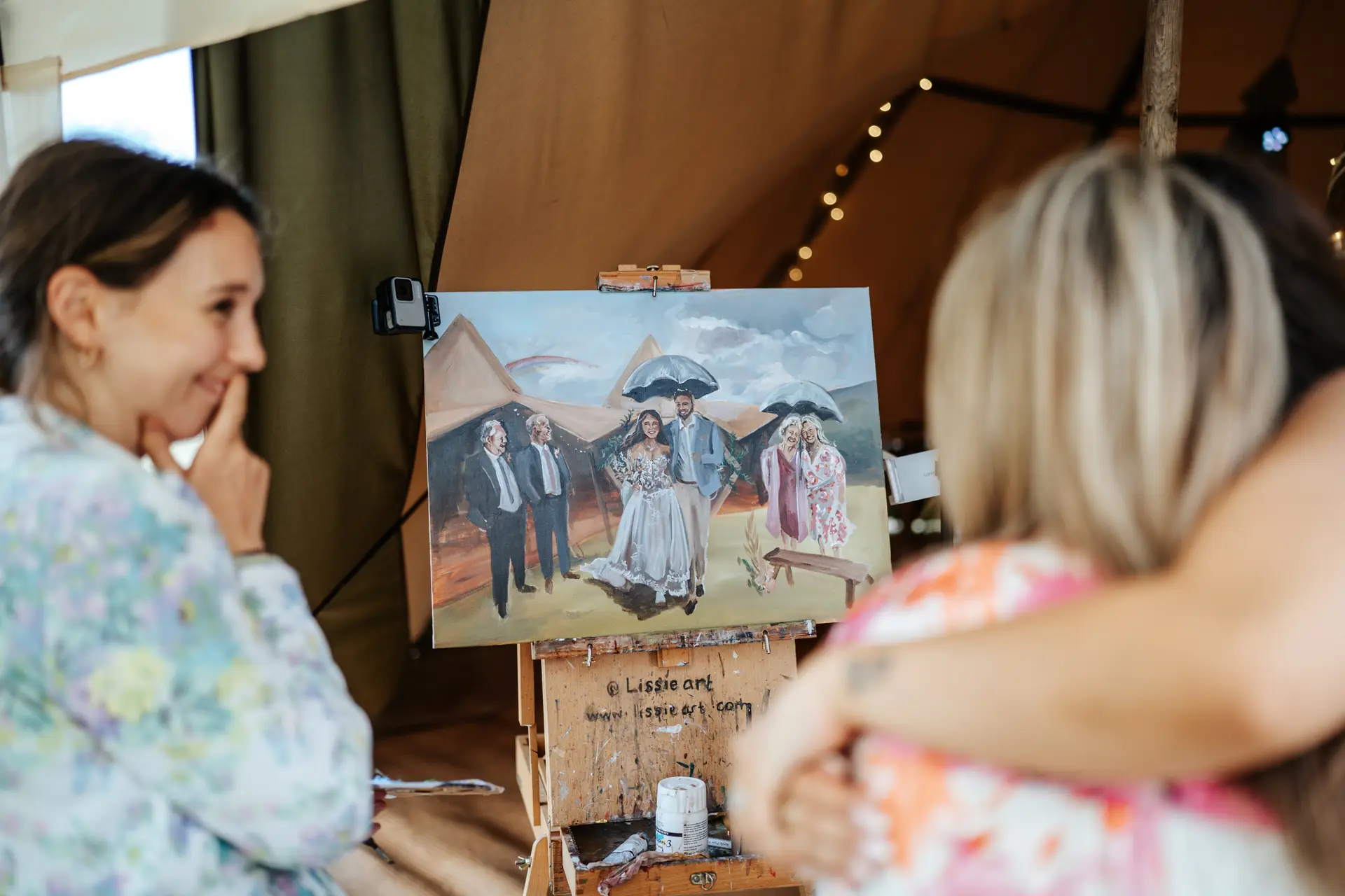 Our favourite part of Charlotte and Ben’s day (aside from some colossal dance moves) was an artist painting the teepees as the couple and their guests dined. The result – a gorgeous impression of Charlotte and Ben’s teepees complete with loved ones that couldn’t be there on the day. Our eyes are welling up and our hearts are full all over again!