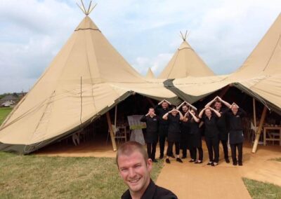 Whether you need a few staff to serve welcome drinks and canapes or a large team to run your whole corporate tipi event, we can supply an experienced, proficient and reliable team to take care of you and your business guests.