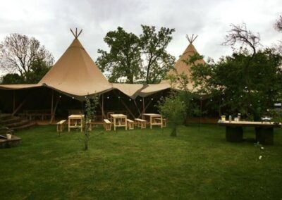 Our tipis provide unmatched flexibility, seamlessly connecting to accommodate any event setup. Whether you need a spacious seating area for presentations, an inviting space for networking, or a stylish venue for a product launch, marketing event, or staff party, our expertly designed tipi structures can be tailored to meet your needs.
